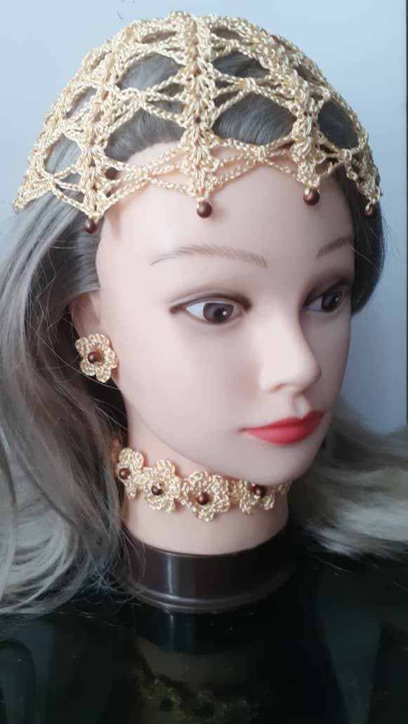 ست کلاه،گوشواره،گردنبند مدل گل ابریشم 430E2109