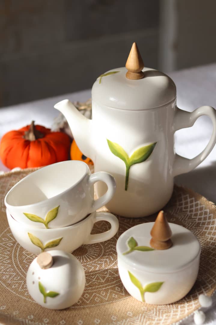ست چایخوری سرامیکی مدل برگ سبز 130E1418
